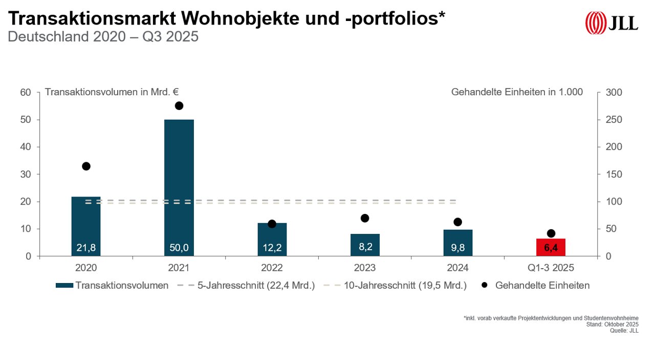FRANKFURT, 6. Oktober 2025 – Institutionelle Investoren fokussieren sich in Deutschland zunehmend auf Wohnimmobilien aus dem Core-Segment. Das sorgt einerseits im Jahresverlauf 2025 für einen stabilen Umsatz, andererseits bremst es jedoch aufgrund des begrenzten Angebots die Marktdynamik aus.
