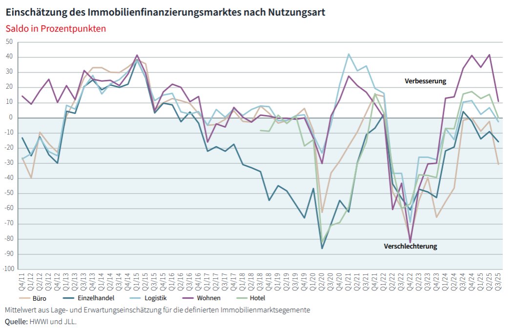 Einschätzung für Wohnen bleibt positiv, Lichtblick für Büroimmobilien