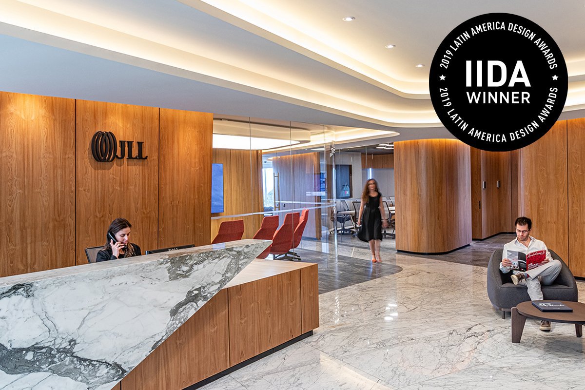 Gracias al trabajo de profesionales expertos del despacho de arquitectura Gensler, quienes colaboraron de forma coordinada con la División de Administración de Proyectos y Desarrollos de JLL México, la Asociación Internacional de Diseño Interior (IIDA por sus siglas en inglés) otorgó un reconocido premio de Diseño Latinoamericano al proyecto de oficinas de JLL México.