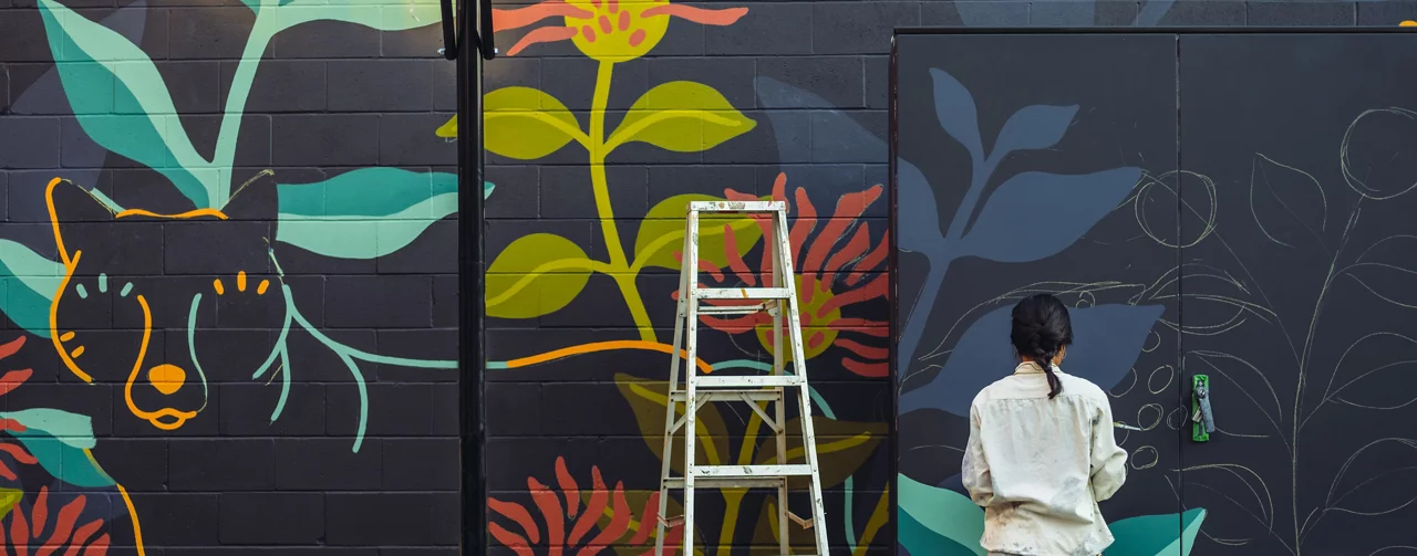 オフィスアートといえば、このウォールアートを思い浮かべる方も多いのではないでしょうか。一般的にオフィスの壁には壁紙やタイルなどを貼ることが多いですが、壁の一部、もしくは壁一面にイラストやグラフィックなどの迫力のある大型作品によってオフィス空間を演出できるのがウォールアートの最大の魅力といえます。また、企業のパーパスや経営哲学などを想起させるオリジナル作品を作り上げることができ、ブランディング効果が高い点も特徴といえます。一方で、作品完成後に移動したり、修正するのが難しく、原状回復も視野に入れておく必要があります。メンテナンスが必要になるなど、柔軟性に乏しいことが導入後のデメリットともいえそうです。